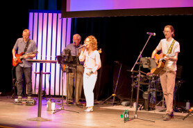 We meet at Henry James Memorial School, with plenty of parking available on-site. Follow the signs in the driveway next to the school. Our Welcome team will be there to greet you and help you find your way around. Our services are held in the auditorium. - Engaging live music, art, and a hope-filled message